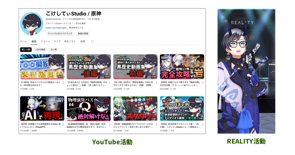 ブログ以外の活動としては、YouTubeでのゲーム実況、Vliver系配信アプリ(REALITY)での歌活動となります。